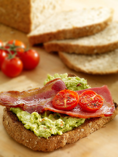- Spread a thick layer of the mashed avocado on top of the toast.