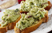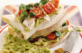 - Mix the crème fraîche, coriander leaves and lime juice together and spread onto one slide of half the sliced bread