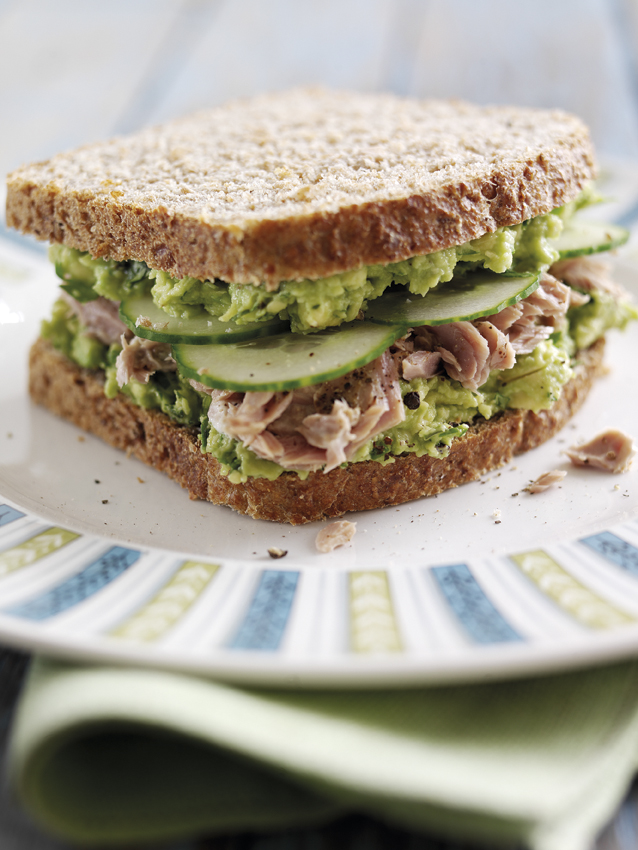 - Spread the avocado mixture onto one both sides of each slice of bread, then top with tuna and then layer with sliced cucumber to complete your sandwich