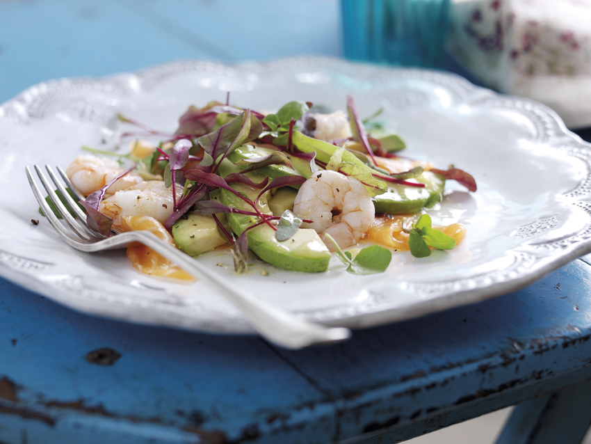 Smoked Salmon, Prawn & Avocado Salad with Horseradish Cream & Lime Vinaigrette