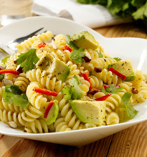 Fusilli with Avocado Chilli Coriander and Toasted Almonds