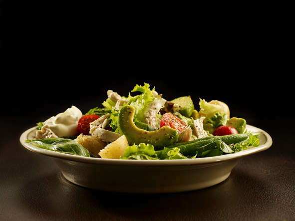 Chicken, avocado and basil salad with yoghurt and garlic dressing